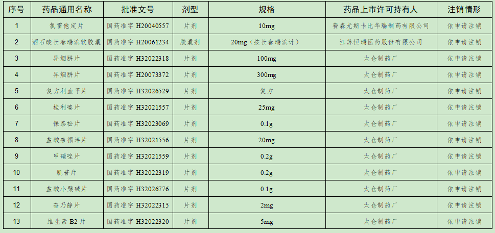 根据《中华人民共和国药品管理法实施条例》《药品注册管理办法》有关规定,国家药品监督管理局决定注销氯雷他定片等80个药品注册证书(https://www.nmpa.gov.cn/xxgk/ggtg/ypggtg/ypqtggtg/20251015172633160.html)。 特此公告。