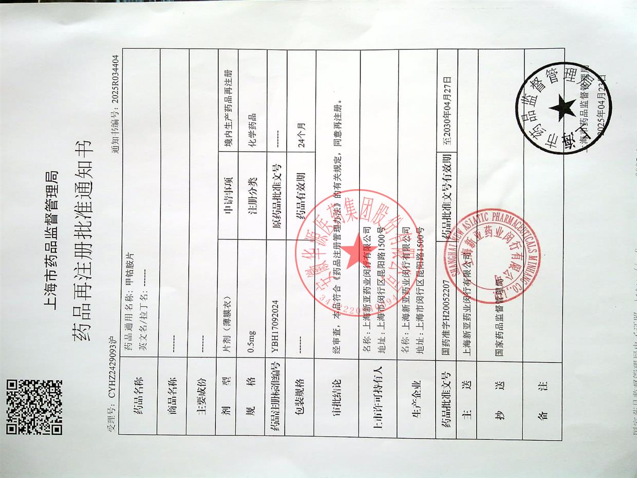 | 用法用量 | 口服。通常成年人一次1片(0.5mg),一日3次,可根据年龄、症状酌情增减。 |