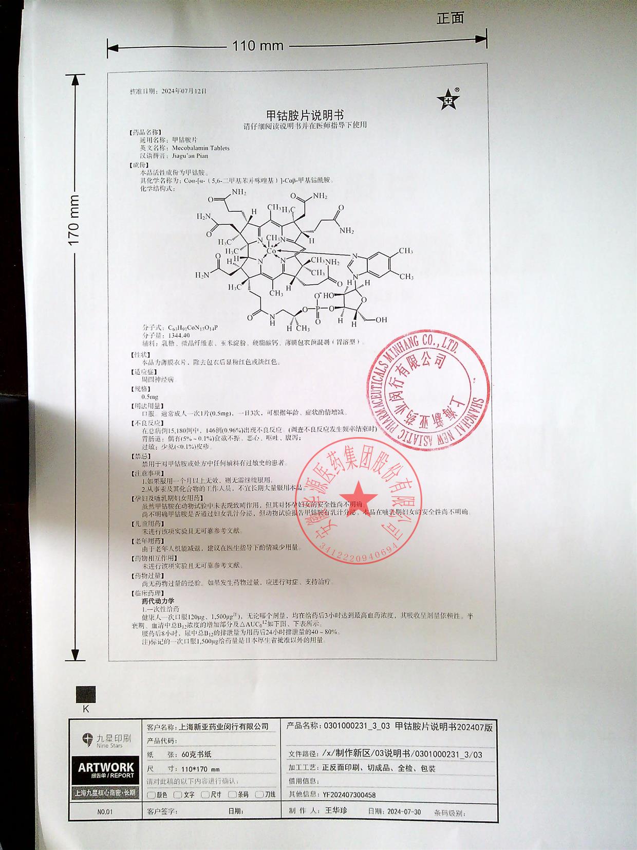 | 禁忌 | 禁用于对甲钴胺或处方中任何辅料有过敏史的患者。 |
