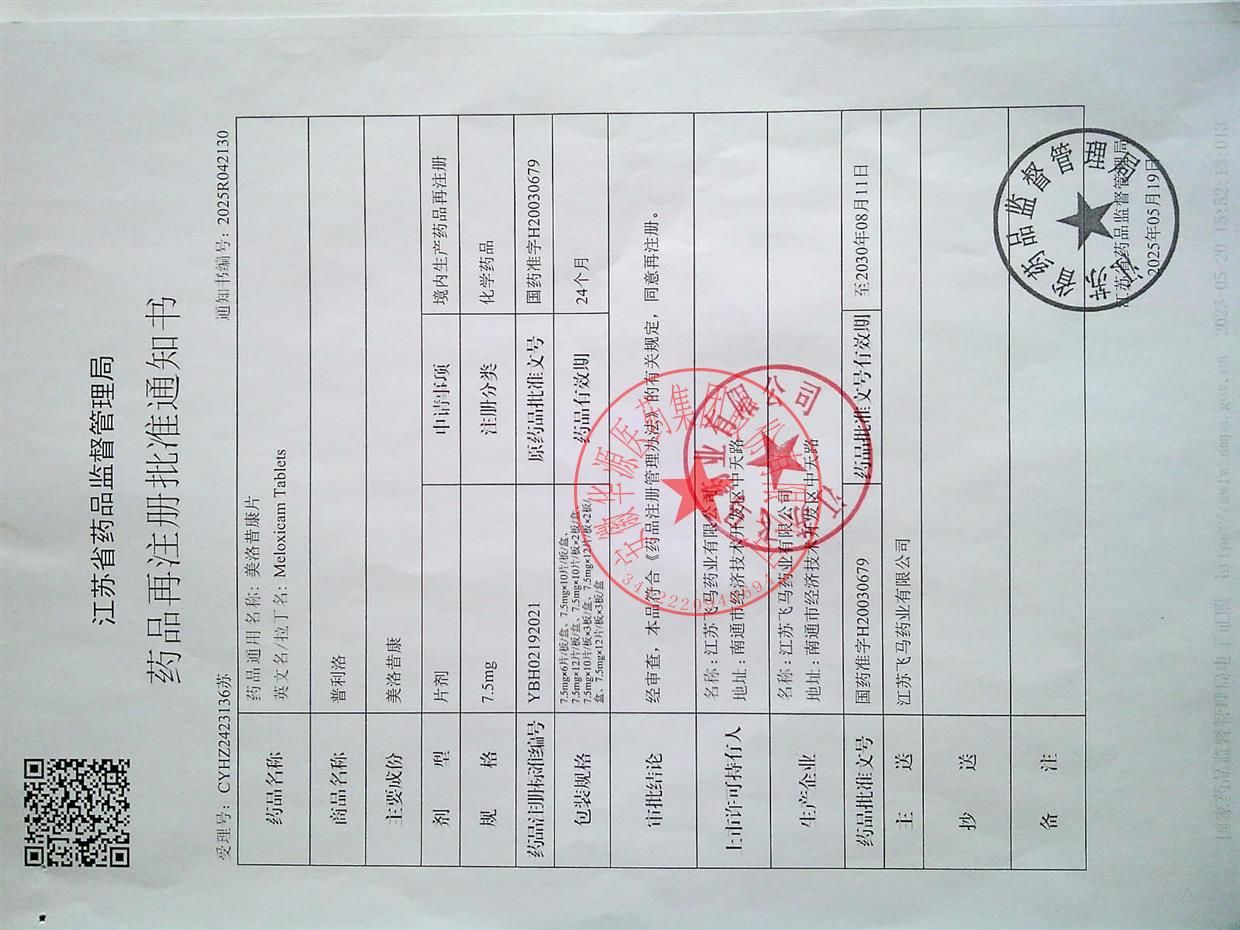 | 上市许可持有人 | 江苏飞马药业有限公司 |