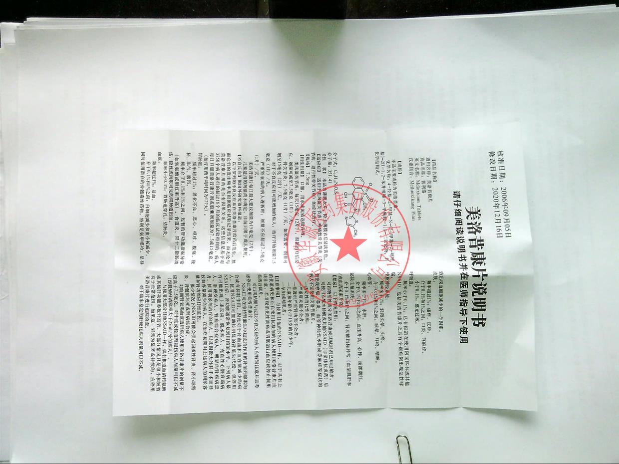 | 注意事项 | 与使用其他的NSAID一样,对于具有上消化道病史和正在使用抗凝剂的病人使用美洛昔康片应该注意,若出现消化性溃疡或胃肠道出血应该停止使用美洛昔康片。详见说明书。 |