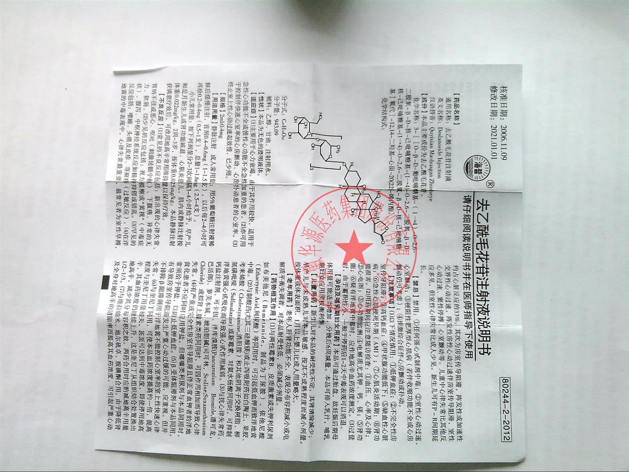 | 产品名称 | 去乙酰毛花苷注射液 |