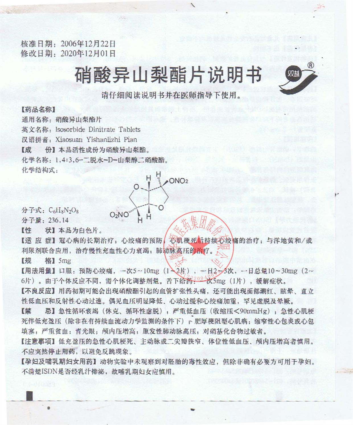 | 用法用量 | 口服:预防心绞痛,一次5~10mg(1~2片),一日2~3次,一日总量10~30mg (2~6片) 。由于个体反应不同,需个体化调整剂量。舌下给药:一次5mg(1片),缓解症状。 |