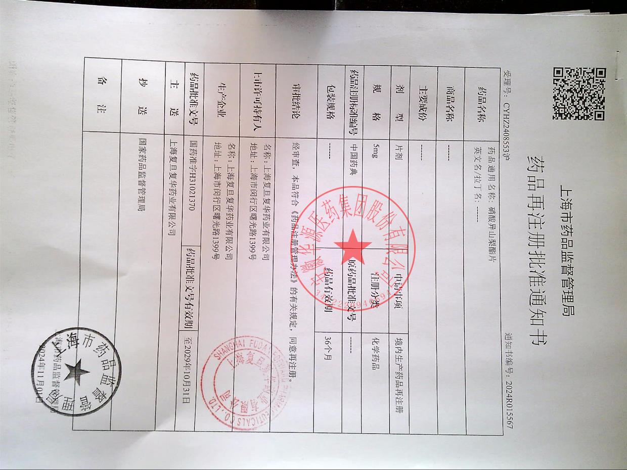 | 上市许可持有人 | 上海复旦复华药业有限公司 |
