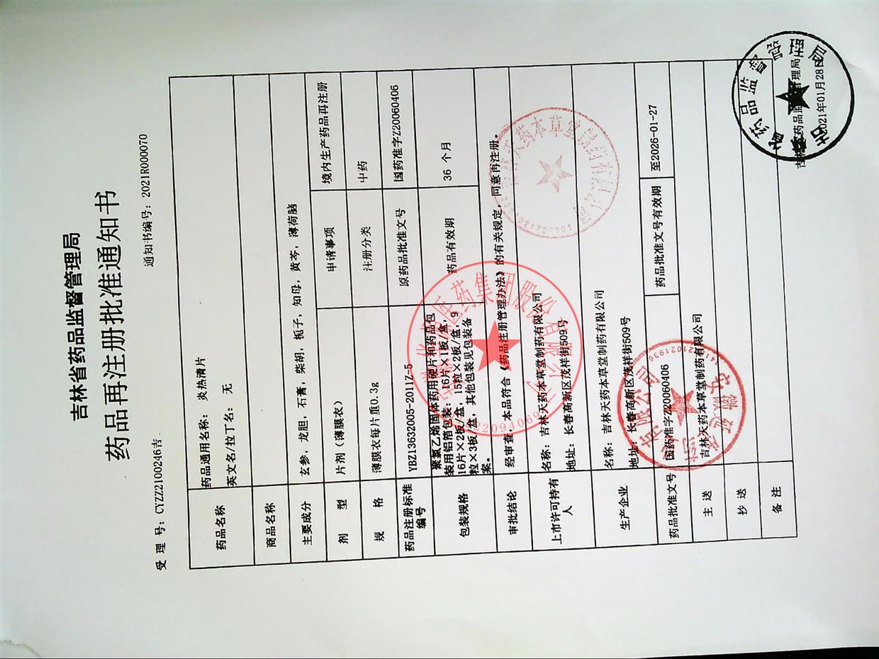 | 上市许可持有人 | 吉林天药本草堂制药有限公司 |