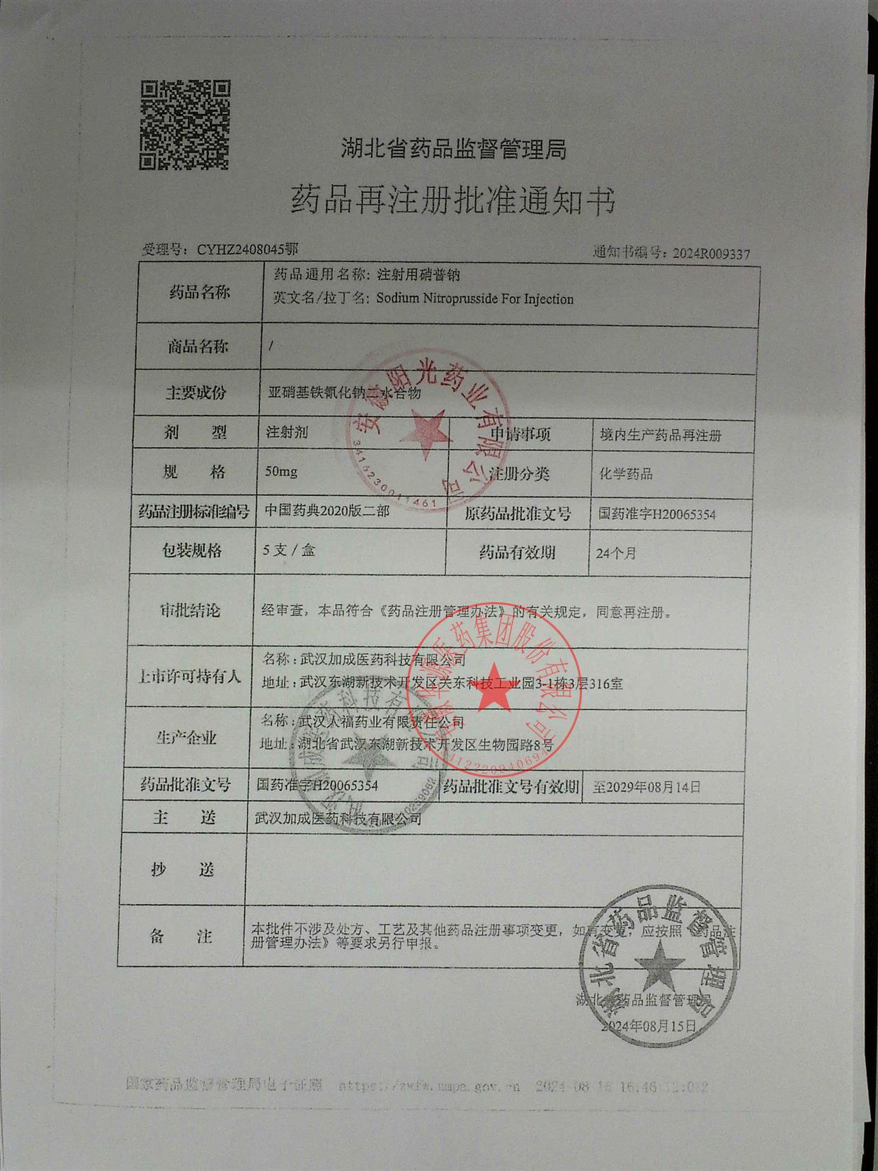 | 上市许可持有人 | 武汉加成医药科技有限公司 |