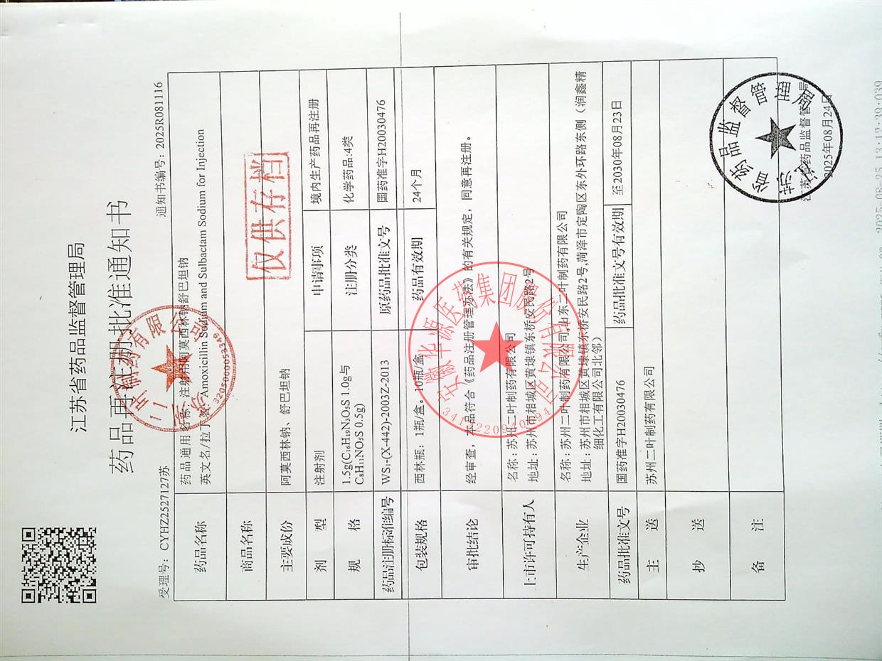 | 产品名称 | 注射用阿莫西林钠舒巴坦钠 |