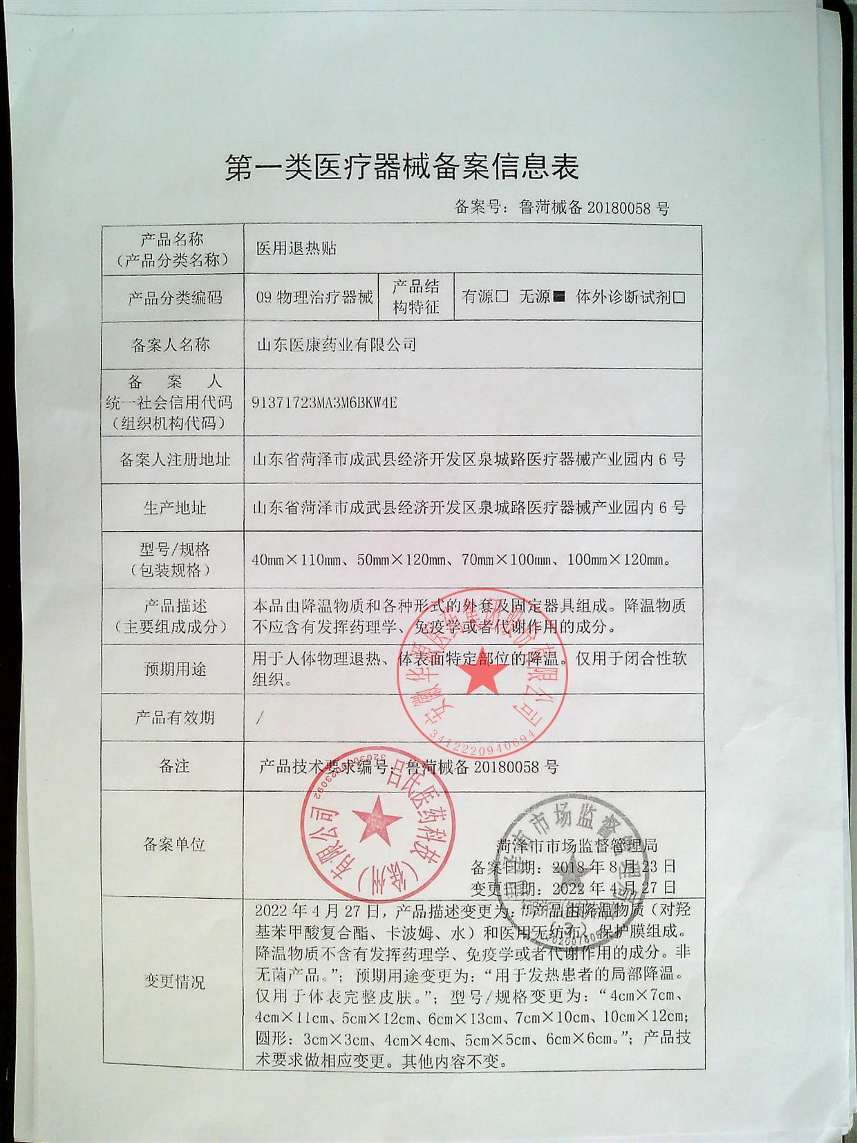 | 注册人/备案人名称 | 山东医康药业有限公司 |