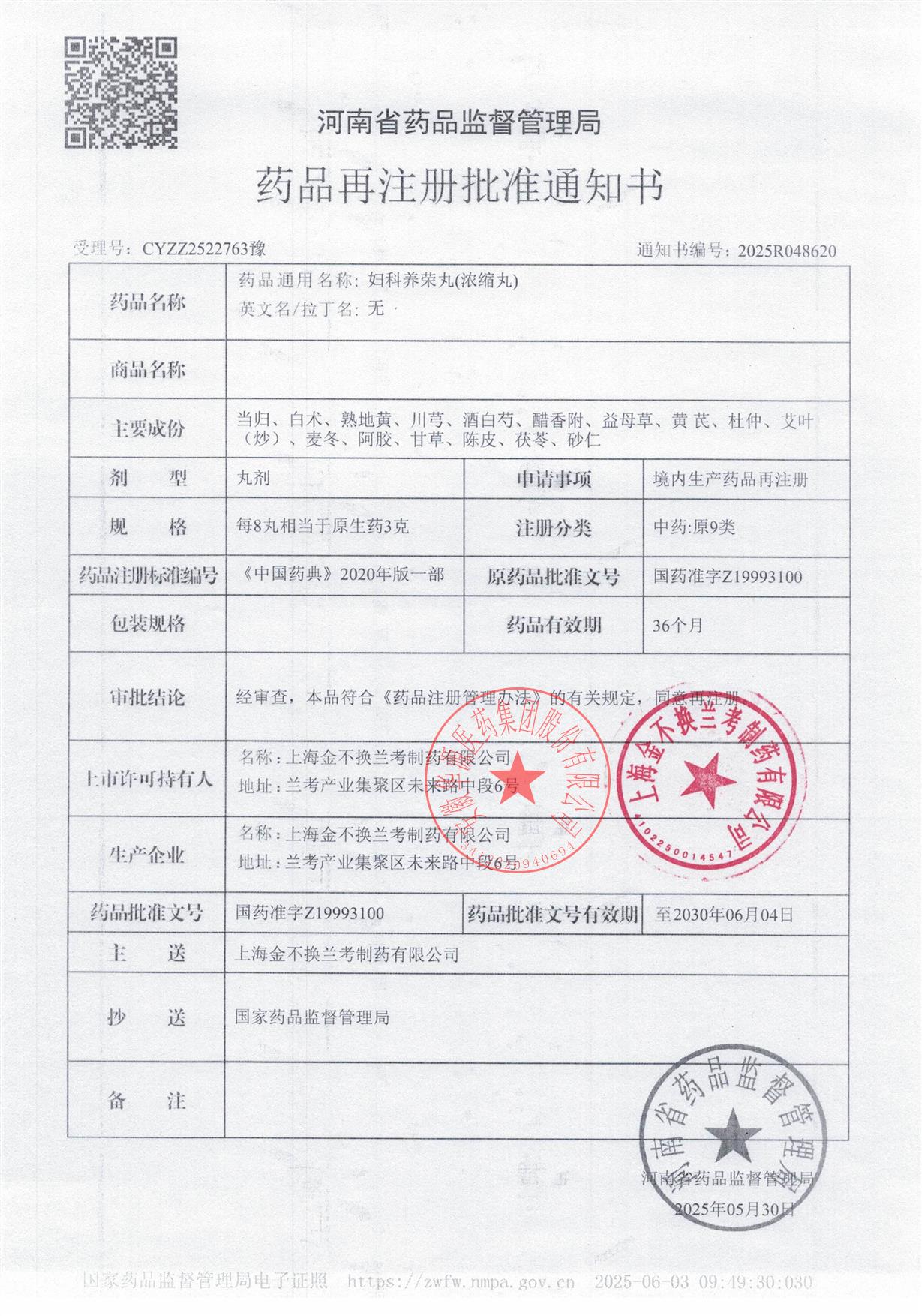 | 生产企业 | 上海金不换兰考制药有限公司 |