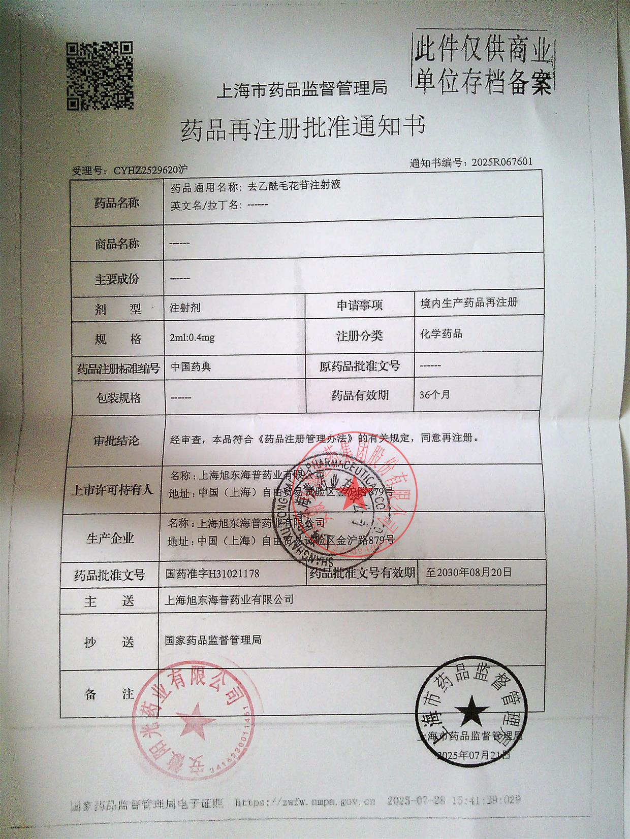 | 上市许可持有人地址 | 中国(上海)自由贸易试验区金沪路879号 |