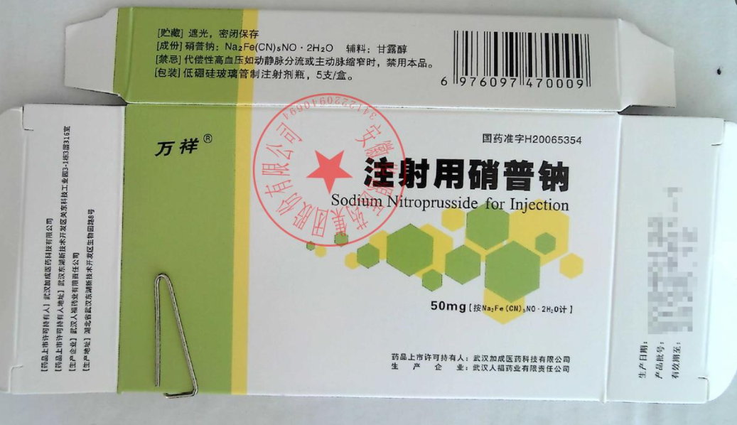 | 适应症/功能主治 | 1、高血压急症,如高血压危象、高血压脑病、恶性高血压、嗜铬细胞瘤手术前后阵发性高血压的紧急降压,也可用于外科麻醉期间进行控制性降压。 2、用于急性心力衰竭,包括急性肺水肿。亦用于急性心肌梗死或瓣膜(二尖瓣或主动脉瓣)关闭不全时的急性心力衰竭。 |