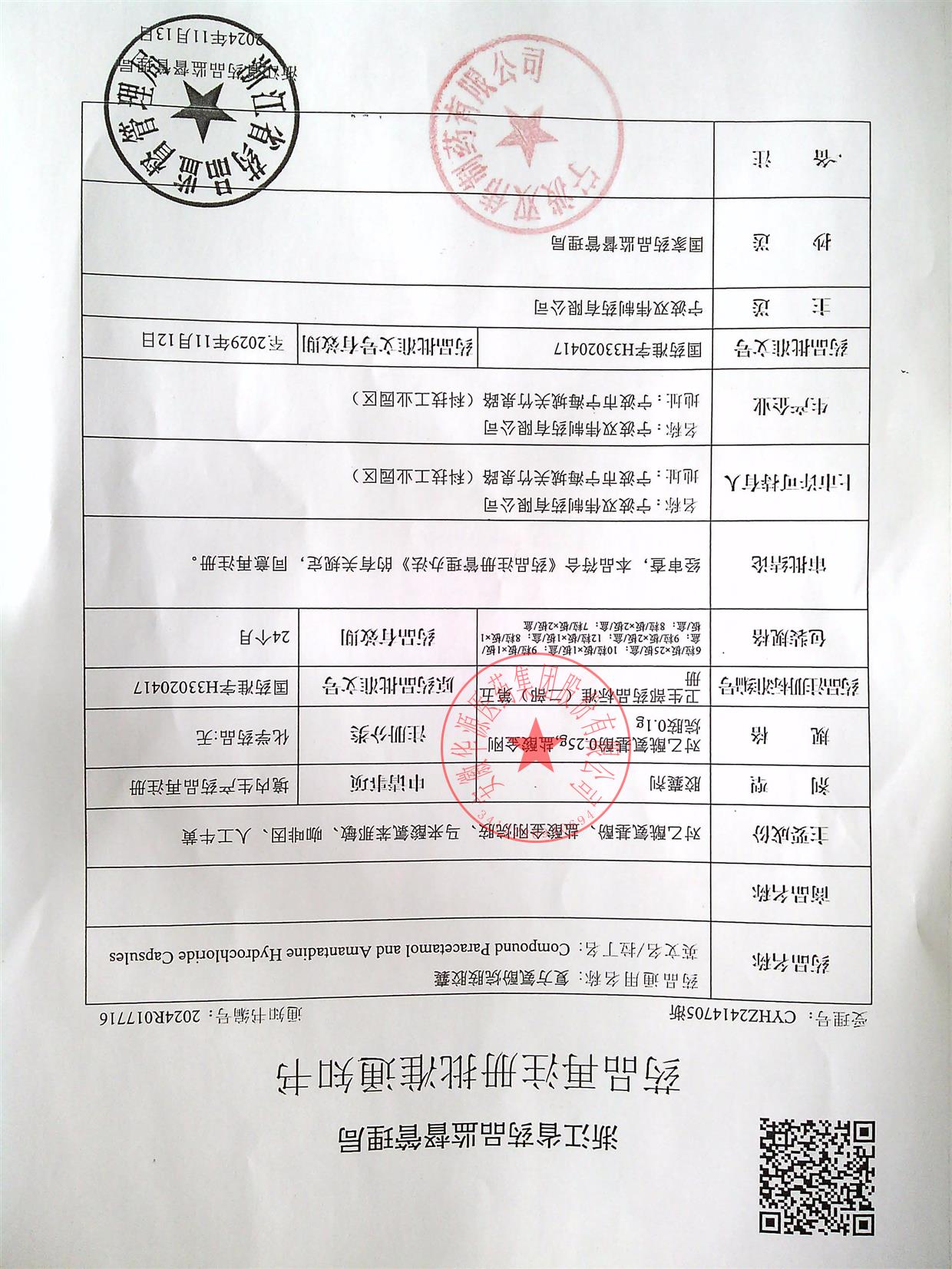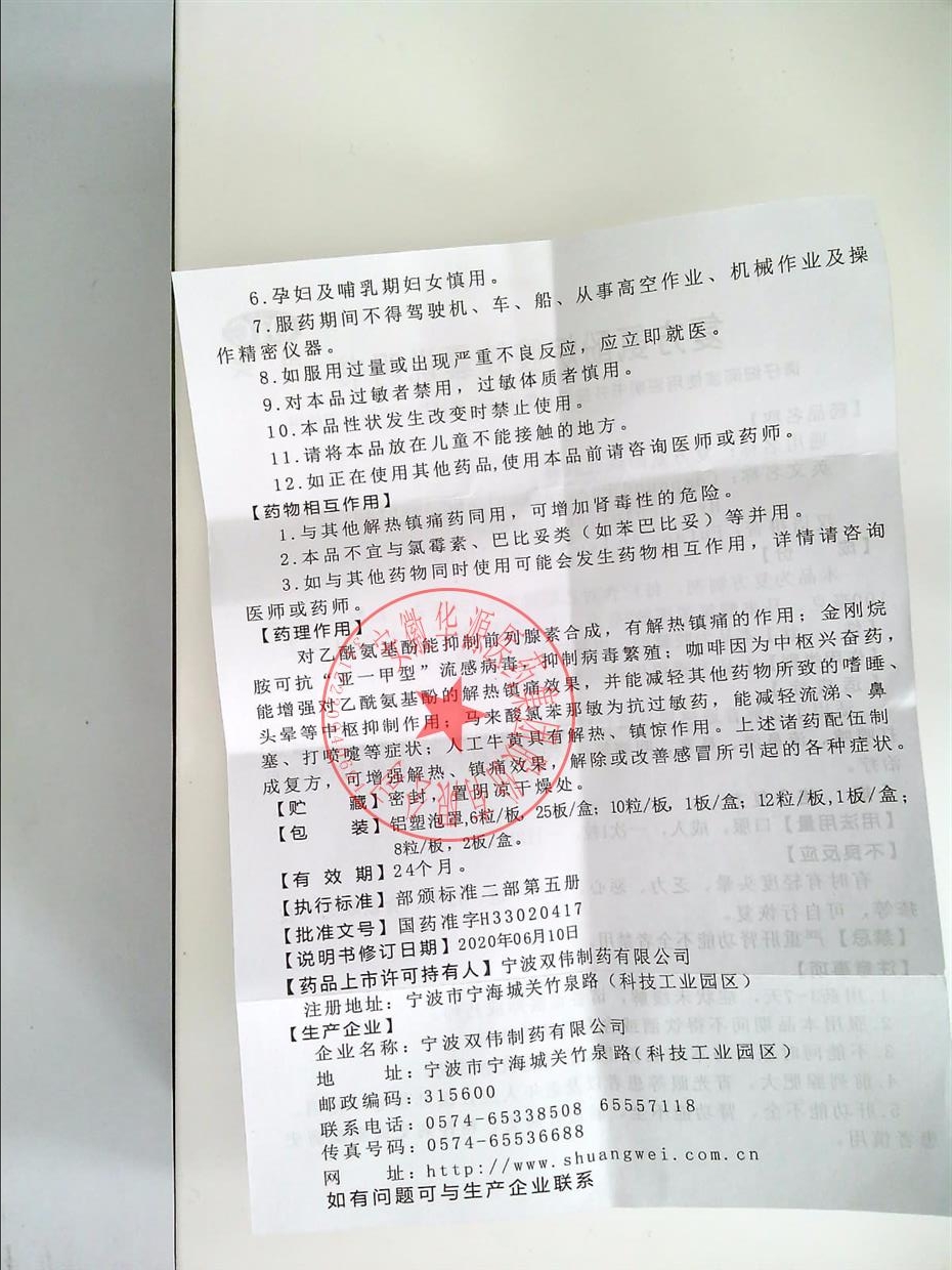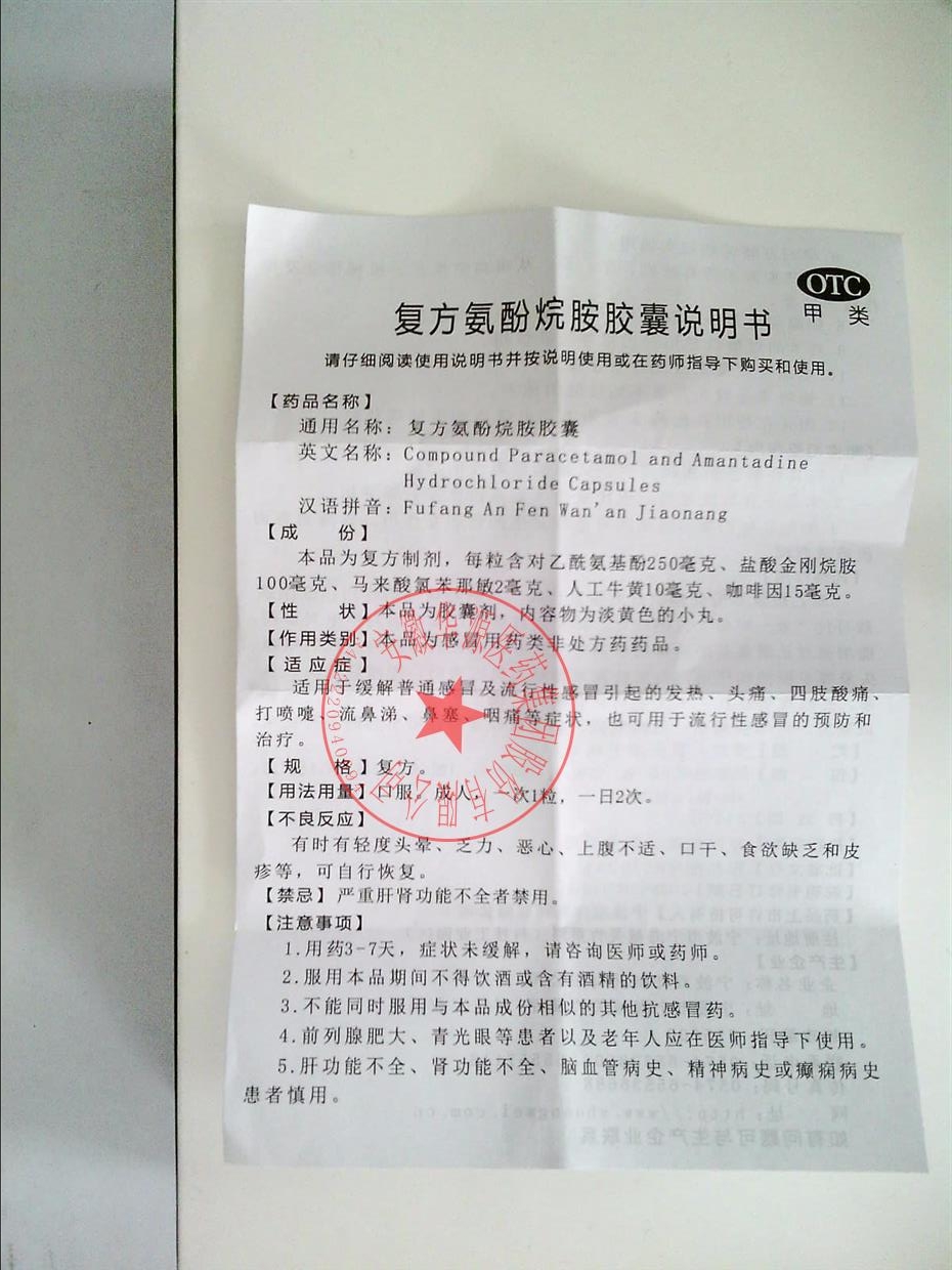 | 规格 | 对乙酰氨基酚0.25g,盐酸金刚烷胺0.1g |