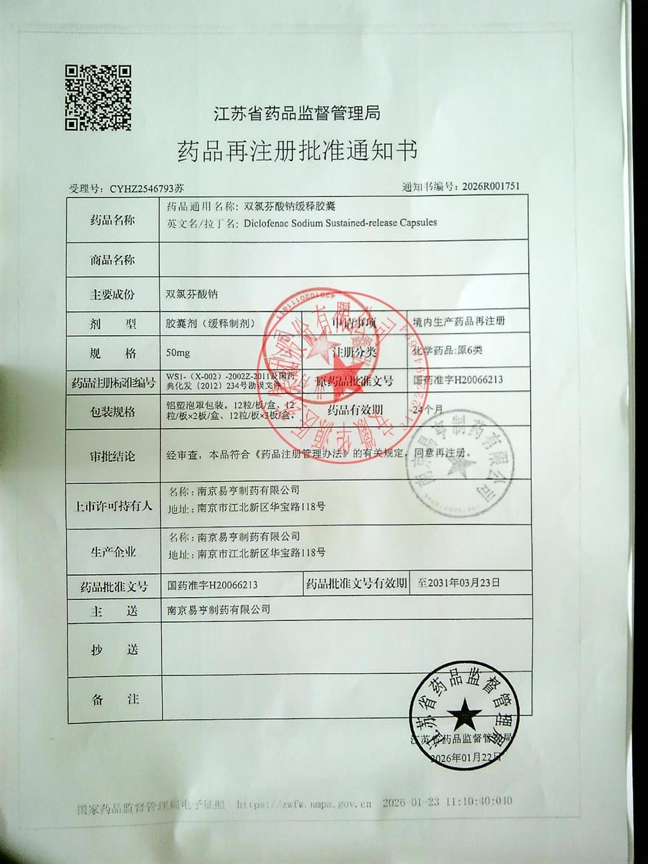 | 产品名称 | 双氯芬酸钠缓释胶囊 |