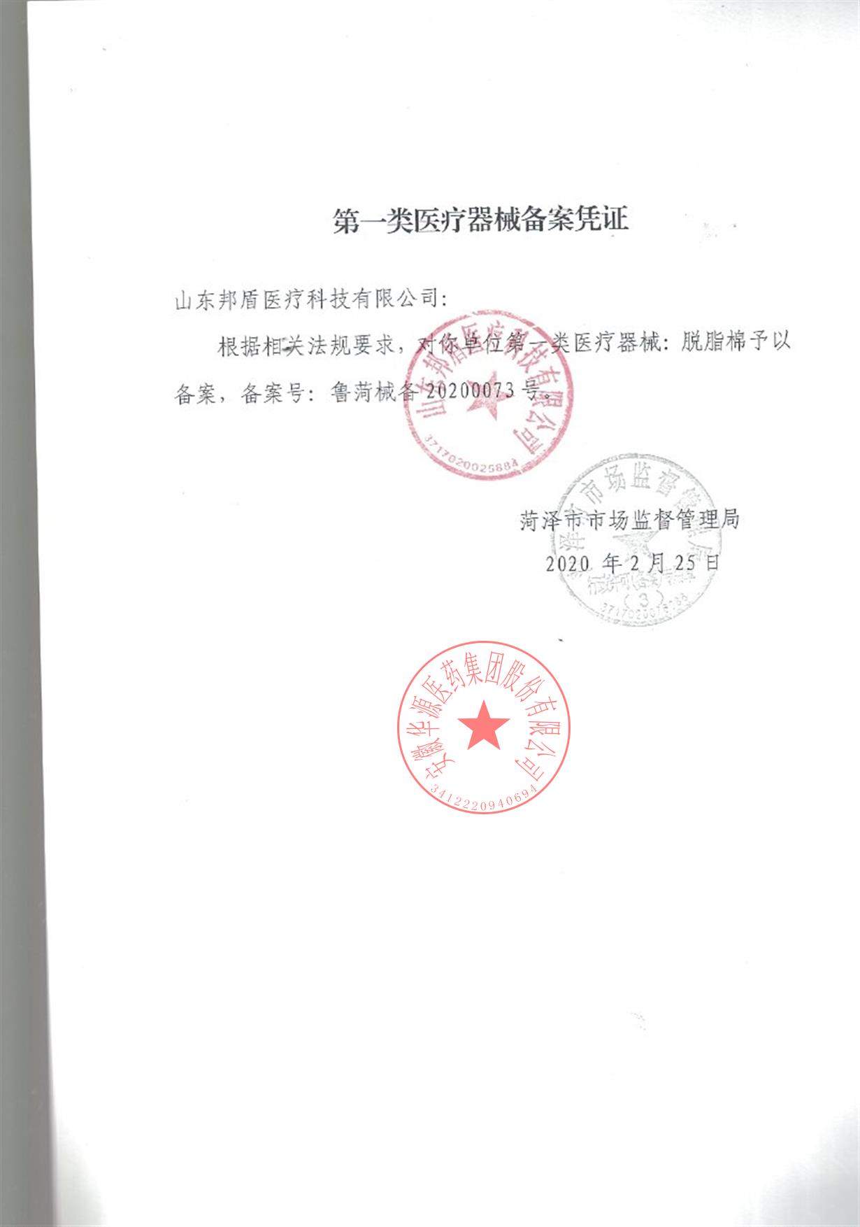 | 医疗器械注册证编号/备案凭证编号 | 鲁菏械备20200073号 |