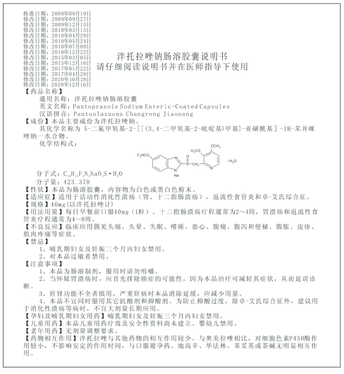 | 产品名称 | 泮托拉唑钠肠溶胶囊 |